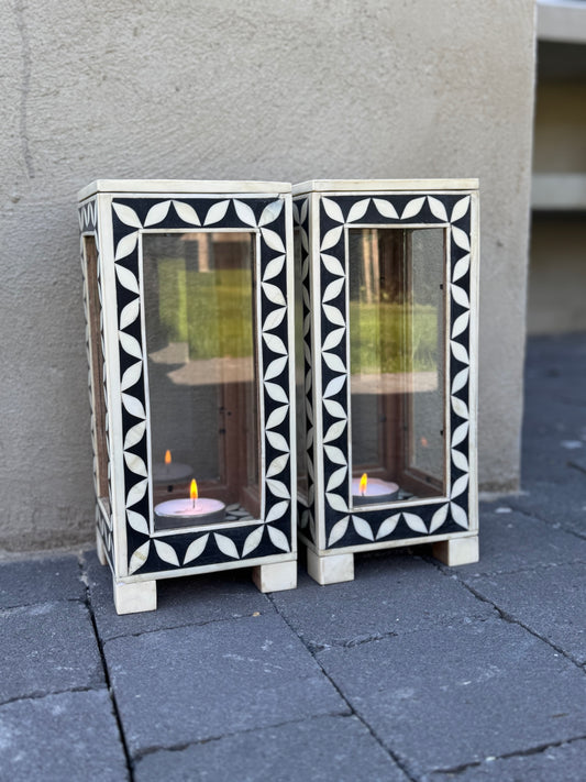 Handgemaakte zwart / wit lantaarn | Sfeervol voor binnen & buiten - HALINA