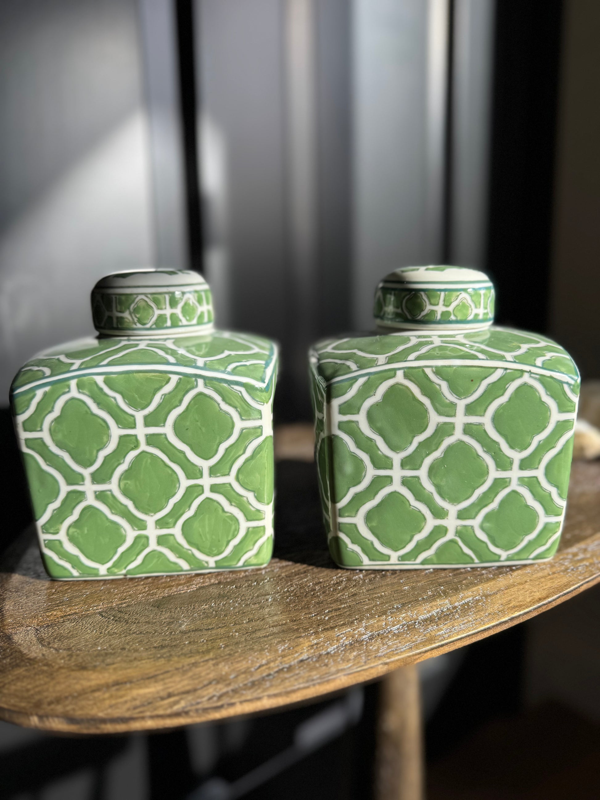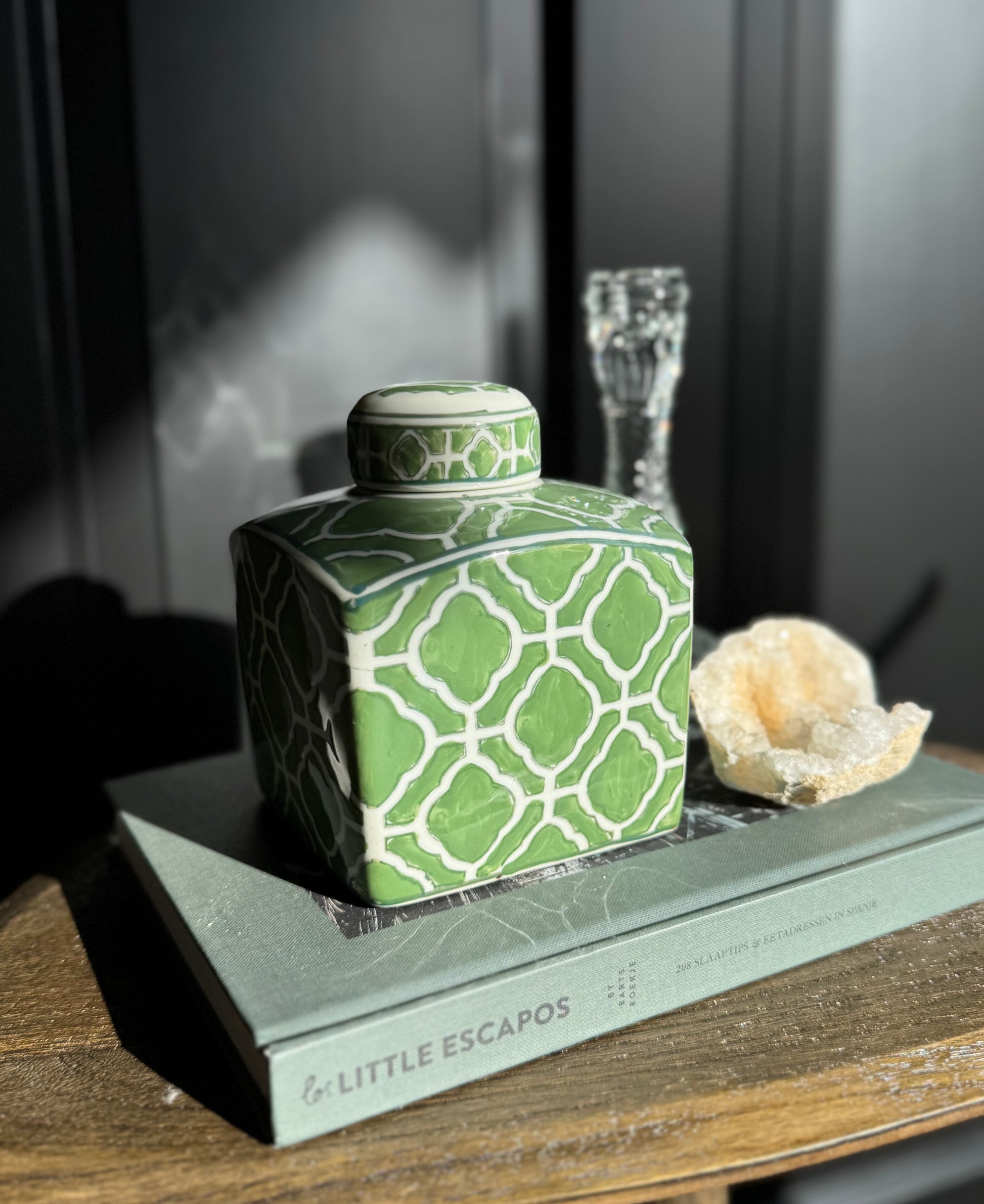 Ben je op zoek naar een stijlvolle Chinese pot met deksel die meteen sfeer toevoegt aan je interieur? Deze prachtige keramische pot met deksel heeft een verfijnd groen-wit dessin en een uniek, vierkante vorm die perfect past in zowel een modern als landelijk interieur.