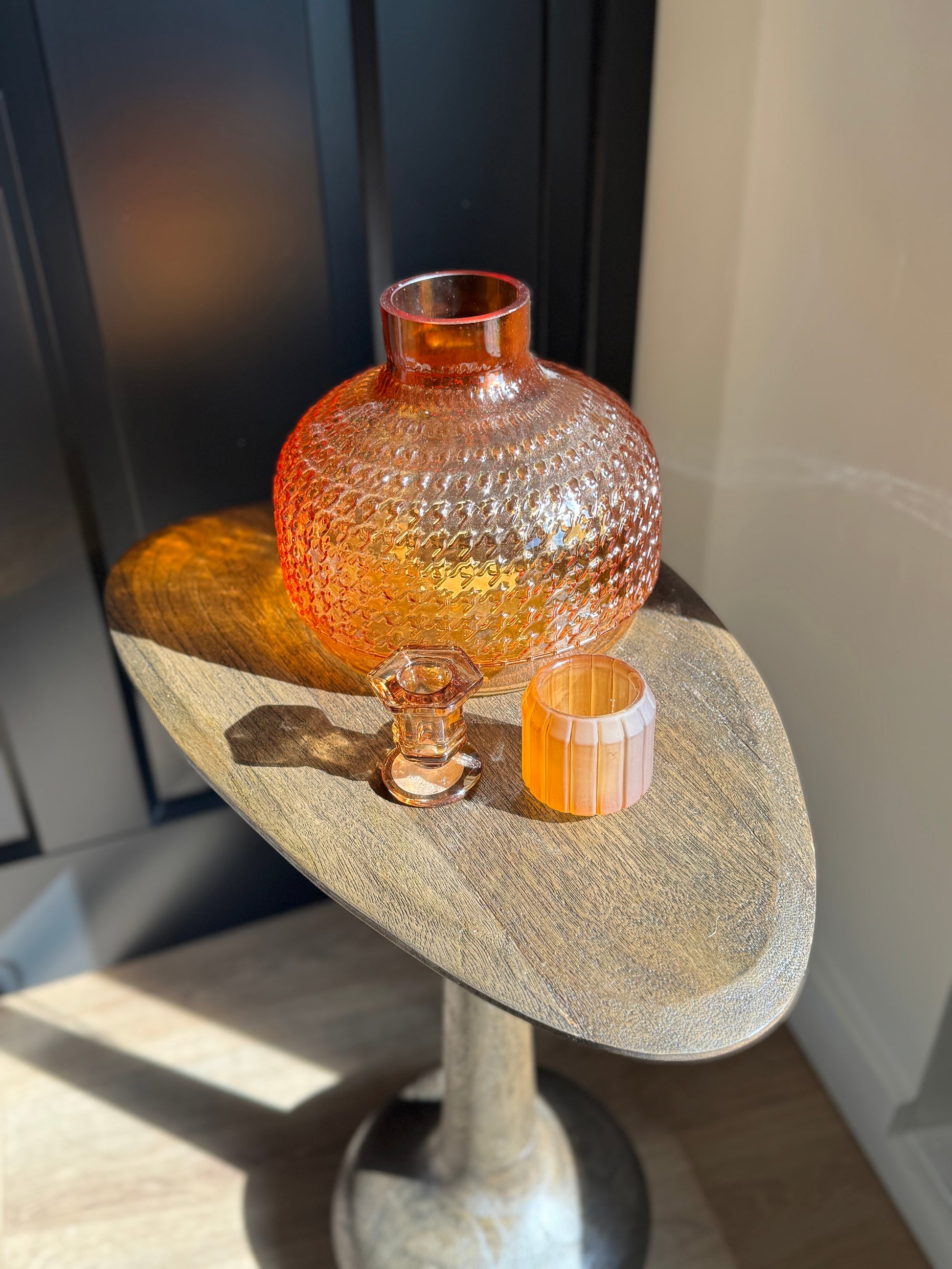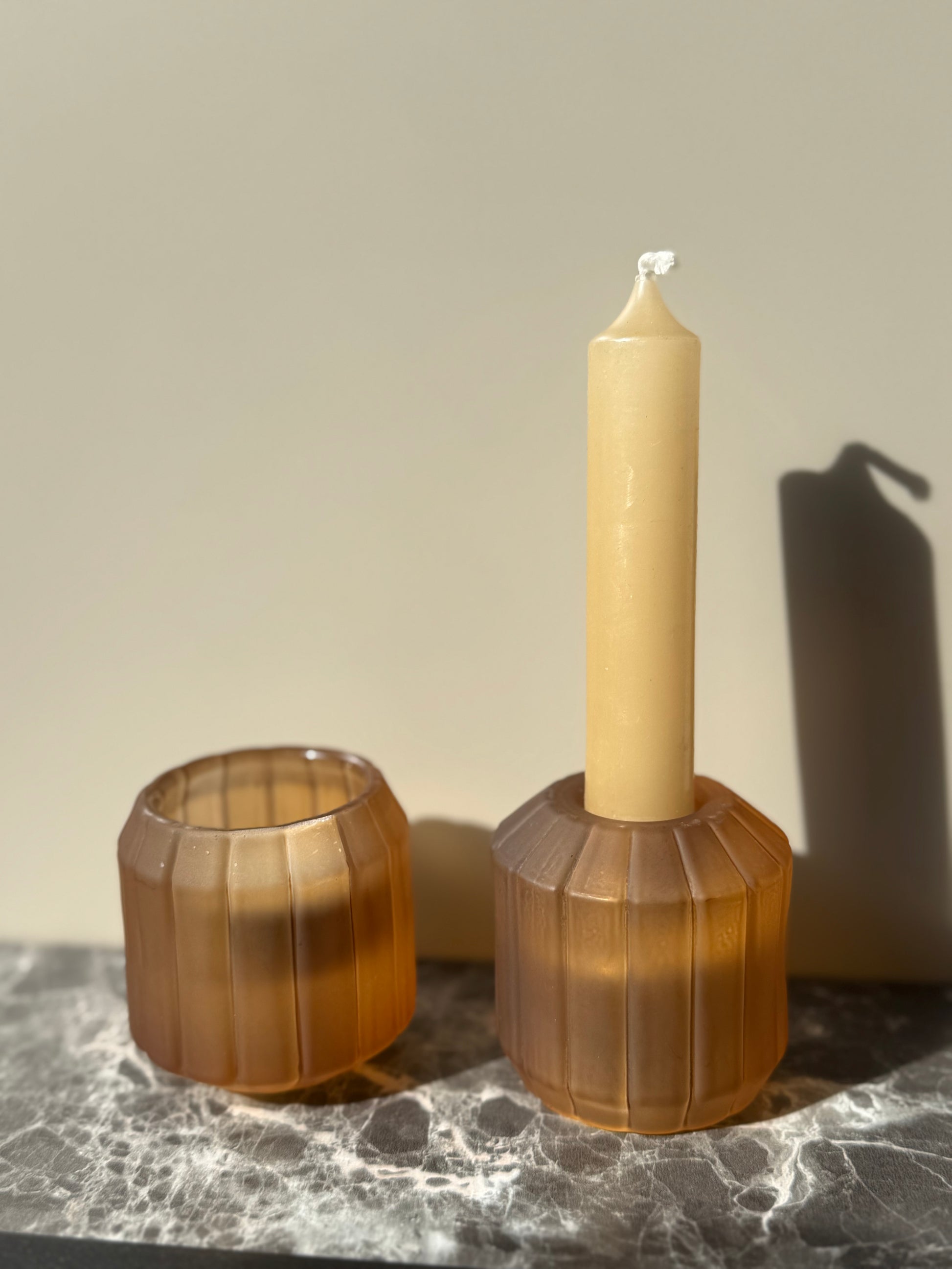 Breng warmte en sfeer in huis met onze mini kandelaar Amber. Het warme oranje geeft een gezellig accent en dankzij het slimme ontwerp kun je hem aan twee kanten gebruiken: als waxinelichthouder of voor een klein kaarsje.