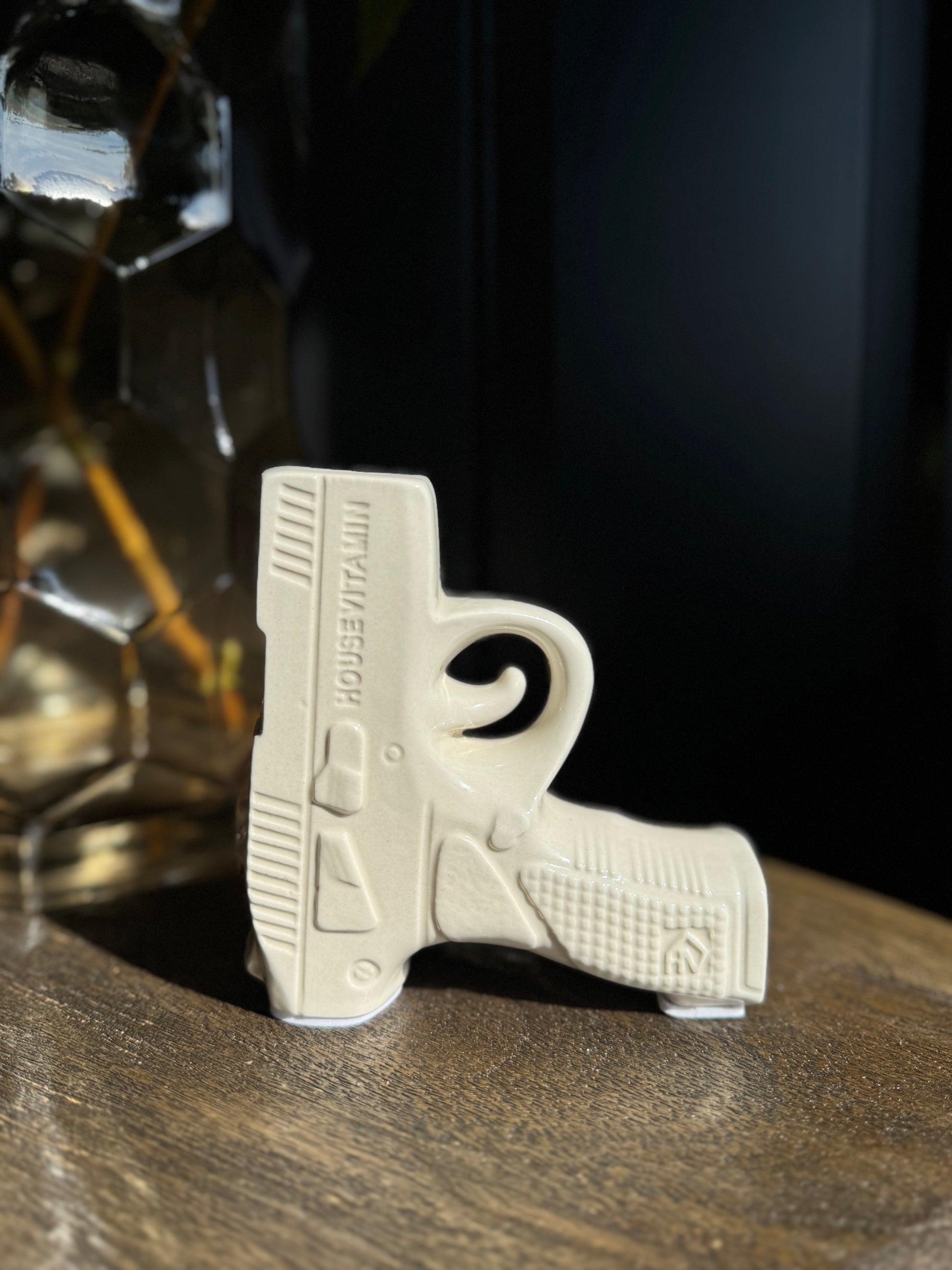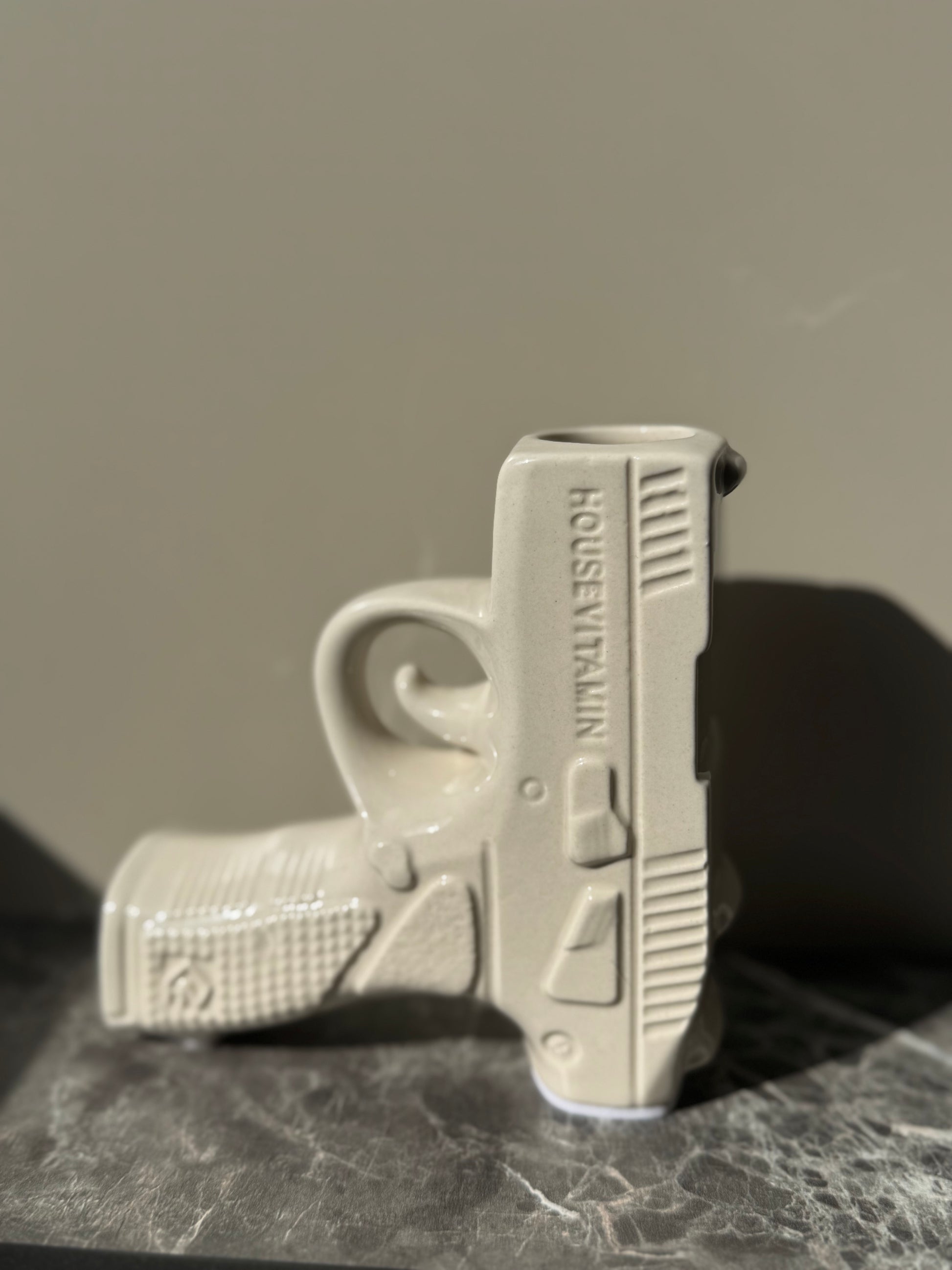 Geef je interieur een stoer én speels accent met dit witte keramiekvaasje in pistoolvorm. Perfect voor een enkel bloemetje of gewoon als opvallend decoratiestuk. Een klein detail met een grote “bang” aan stijl!