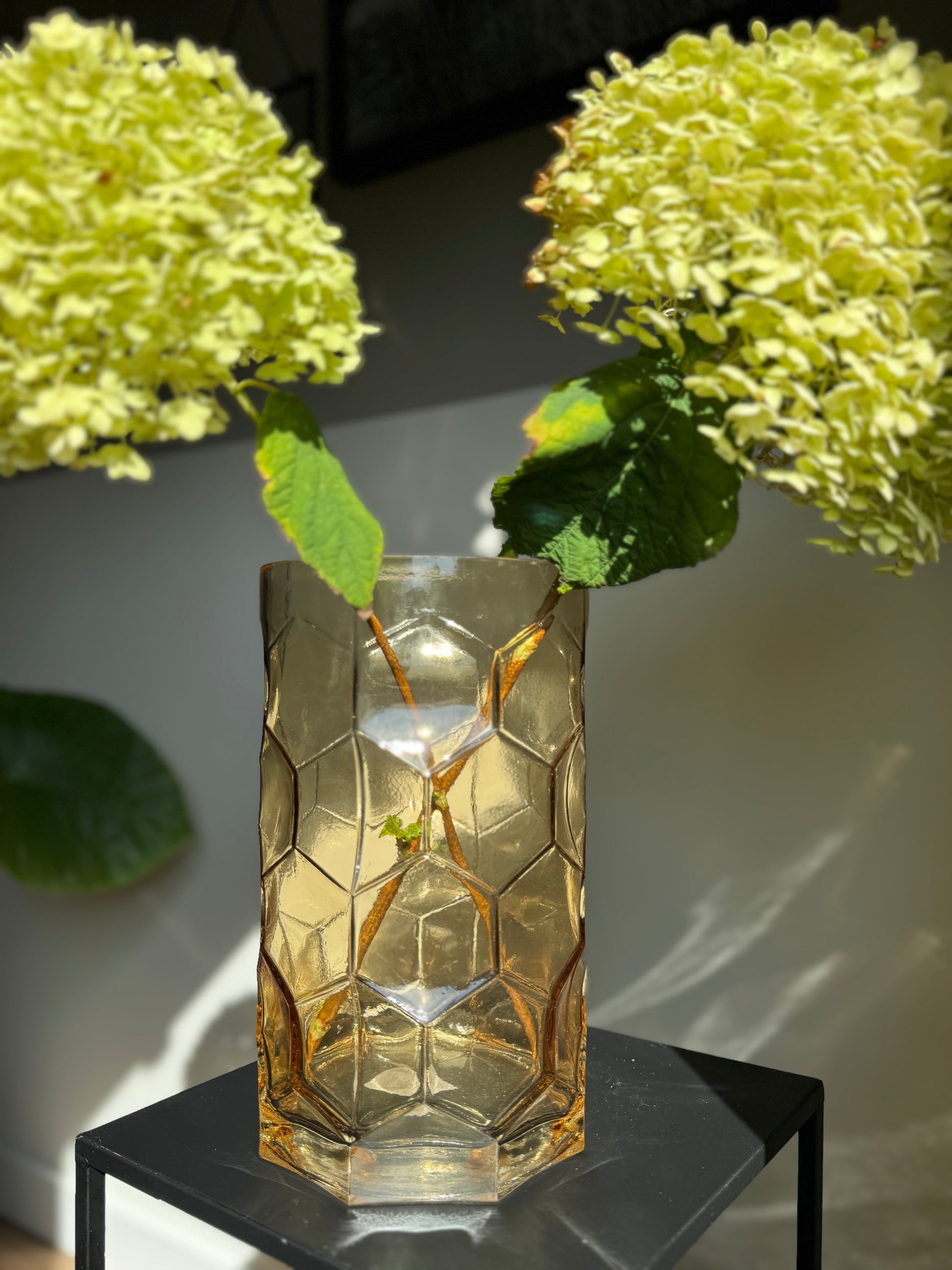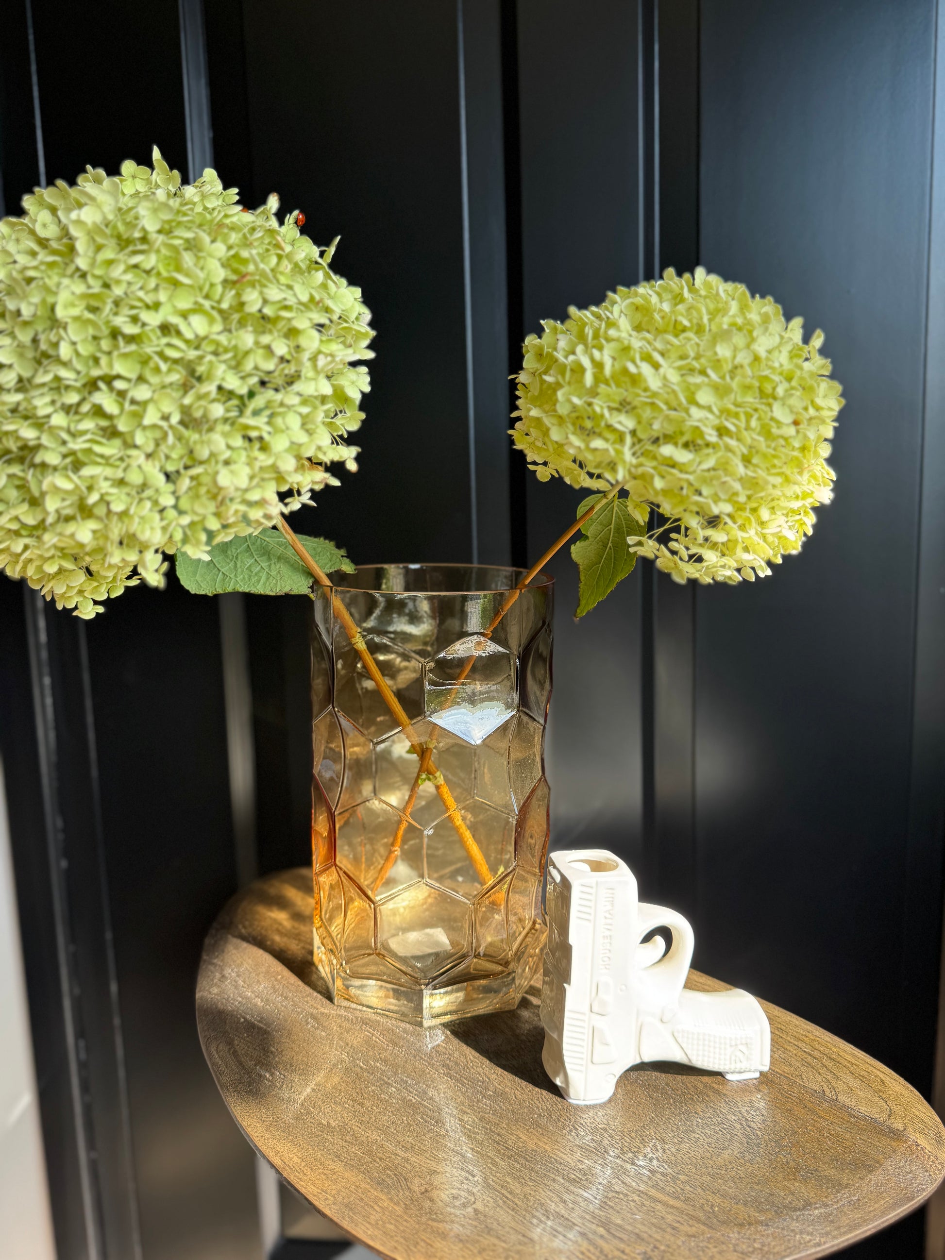 Dit is Sifra, het amberkleurige vaasje van House Vitamin met een leuk patroontje. Perfect voor een bosje bloemen, maar ook gewoon leuk om zo neer te zetten. Want eerlijk… je kunt nooit genoeg leuke vazen hebben!